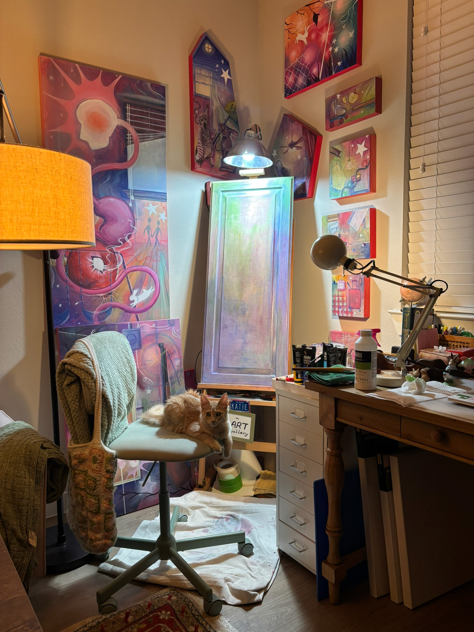 I have a great fondness for the south and Texas and I wish to continue working within these locations to expand the symbols I use within my artwork and form new landscapes that are site-specific. My family evolves and grows by the day; I am constantly pushed and inspired by my partner of 4 years and we have recently adopted a cat, Eowyn, who is loved dearly. I hope to continue making art influenced by those who I deeply care about.