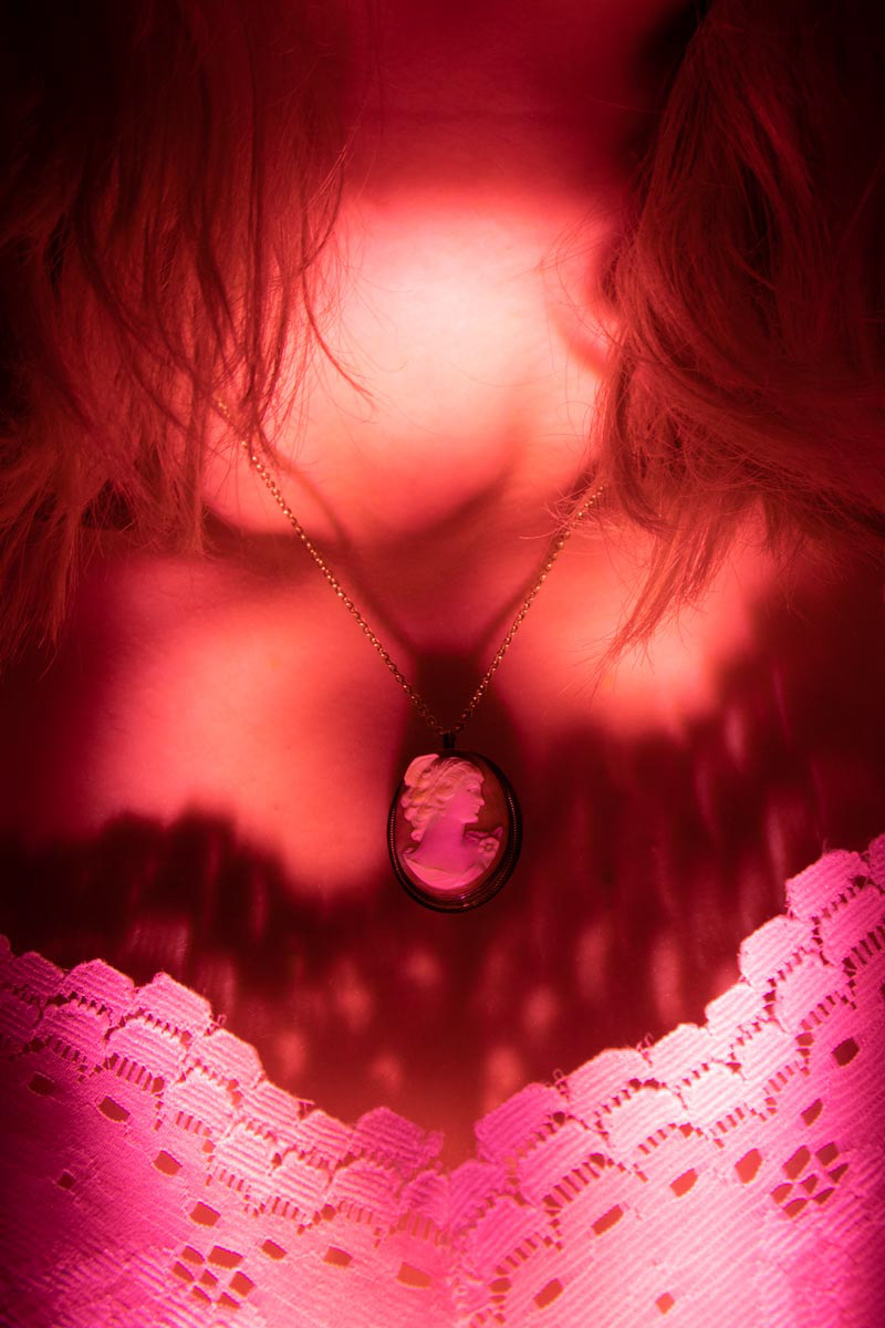 This photographic series uses a blend of self-portraiture, a warm, pink, color palette, and small collections of intimate items to relay a semi-autobiographical story of womanhood, femininity, and the ties that family has deep within the physical body. By using strong, colored lighting and soft, airy compositions, I comment on my own personal experience in a female body while I simultaneously insert myself into different characters as I contemplate the long lineage of women that brought me into existence and the hardships they endured.